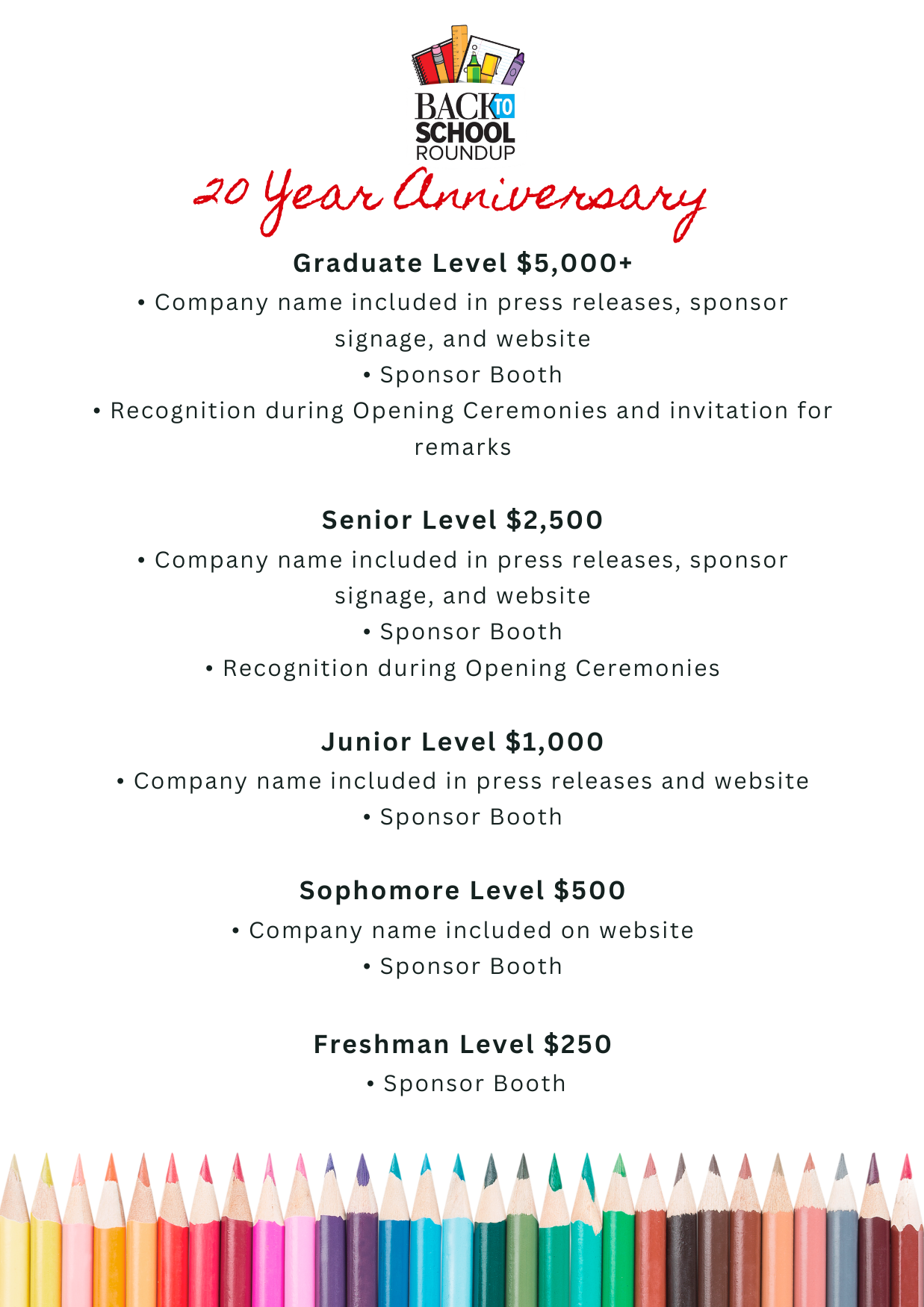 Sponsors receive recognition through event promotion, media coverage, and on-site visibility during the Roundup. Opportunities may include logo recognition, larger booth space, and employee volunteer experiences.